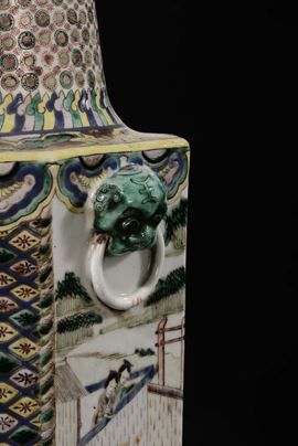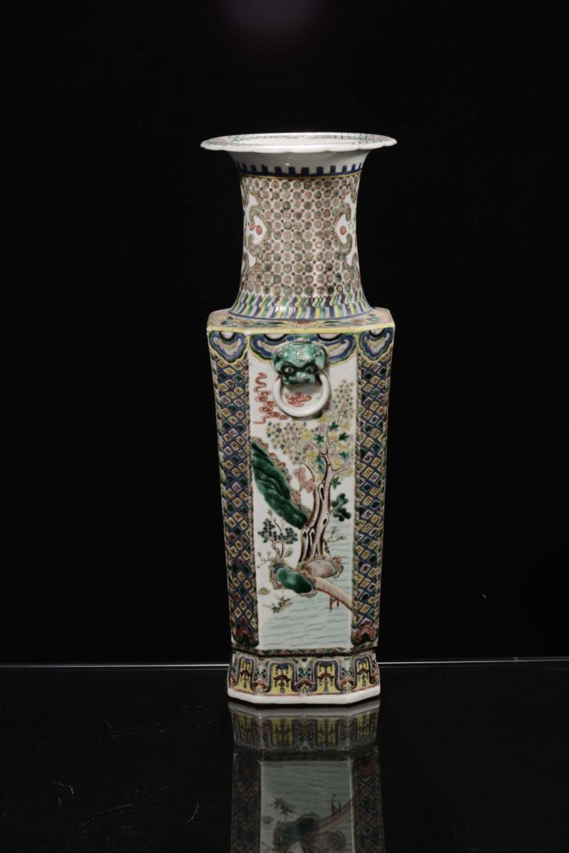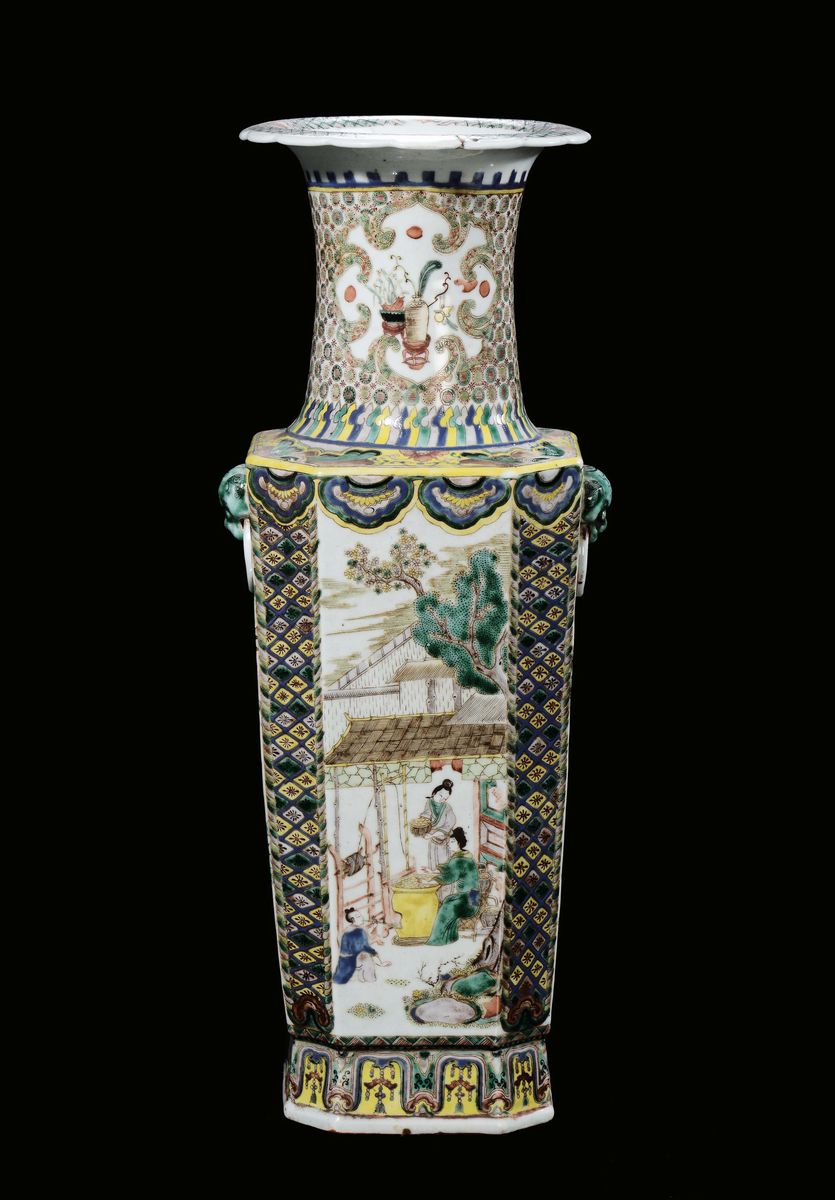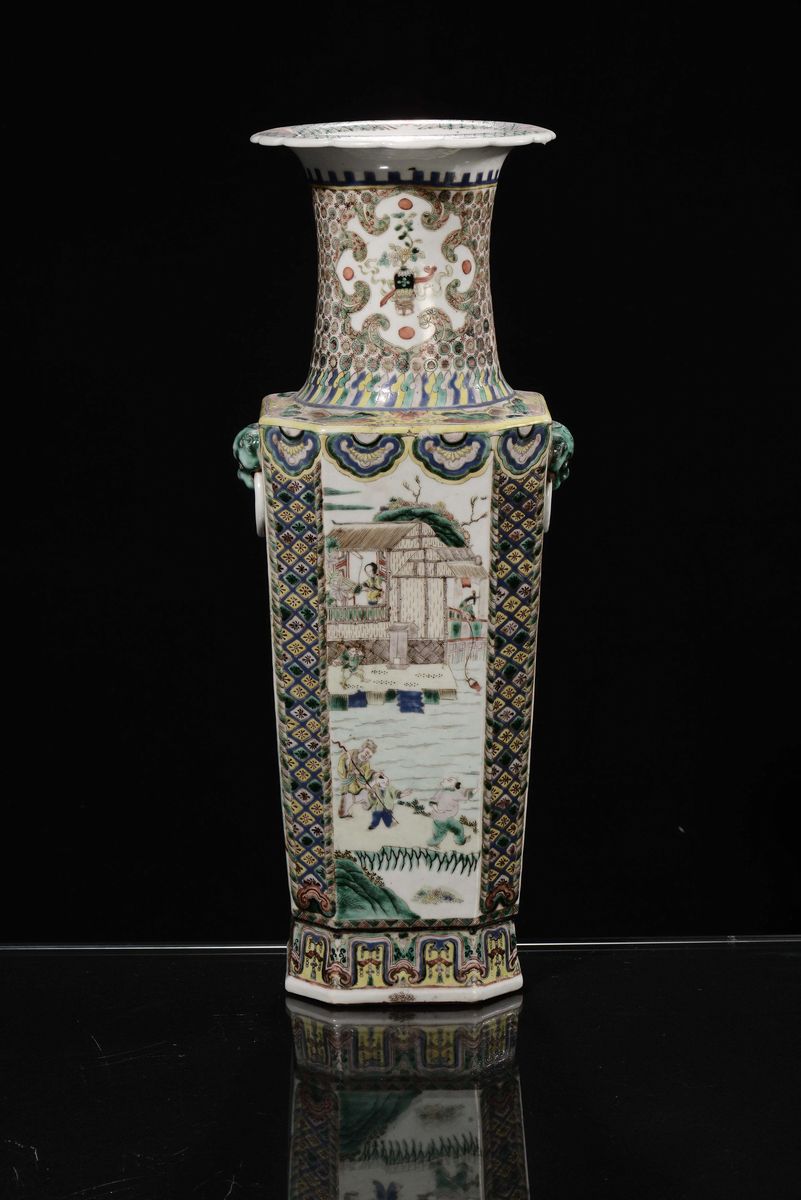 A polichrome Famille-Verte porcelain vase with stylized oriental life scenes decorations, China Qing Dynasty, 19th centur [..]