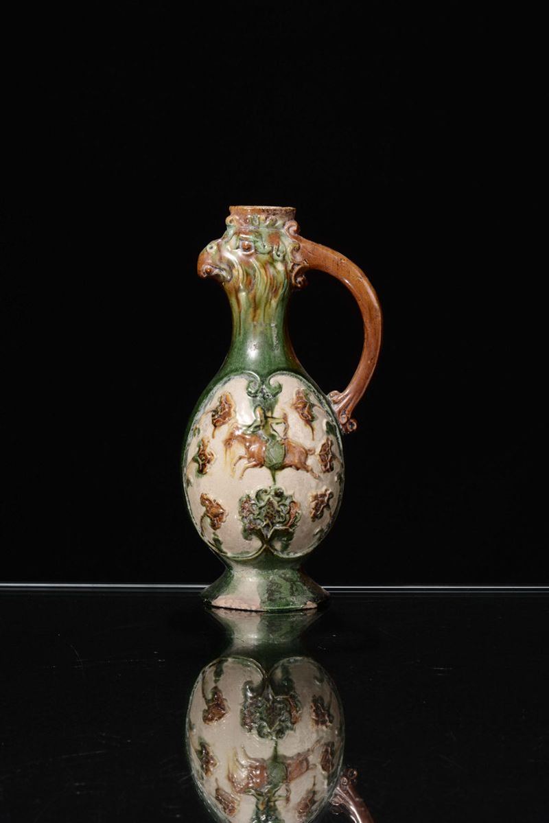 A polychrome earthenware zoomorphic jug, China, Qing Dynasty 19th century