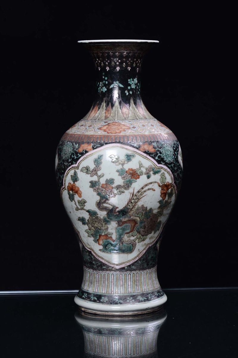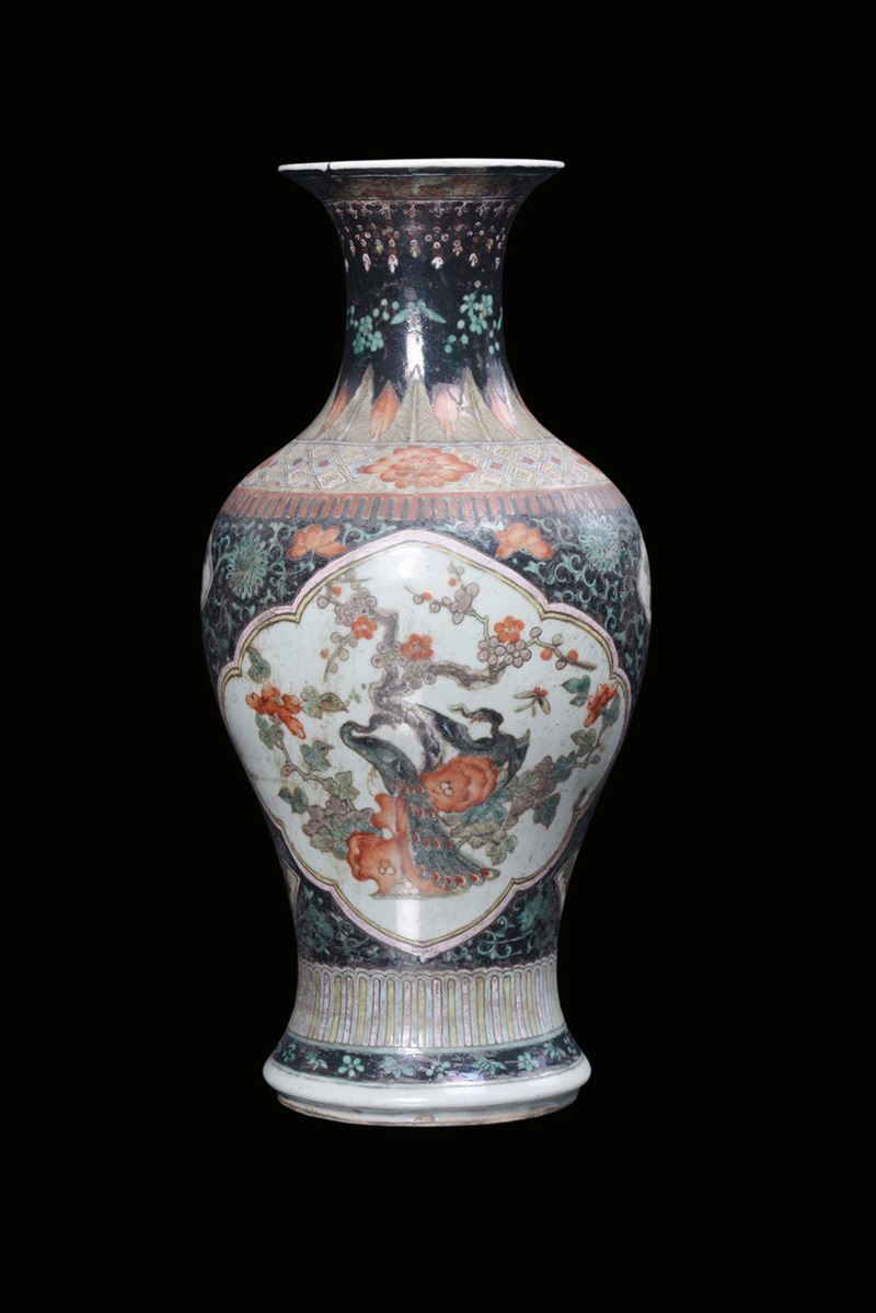 A polychrome Famille-Noire porcelain vase with floral decoration, China, Qing Dynasty, 19th century