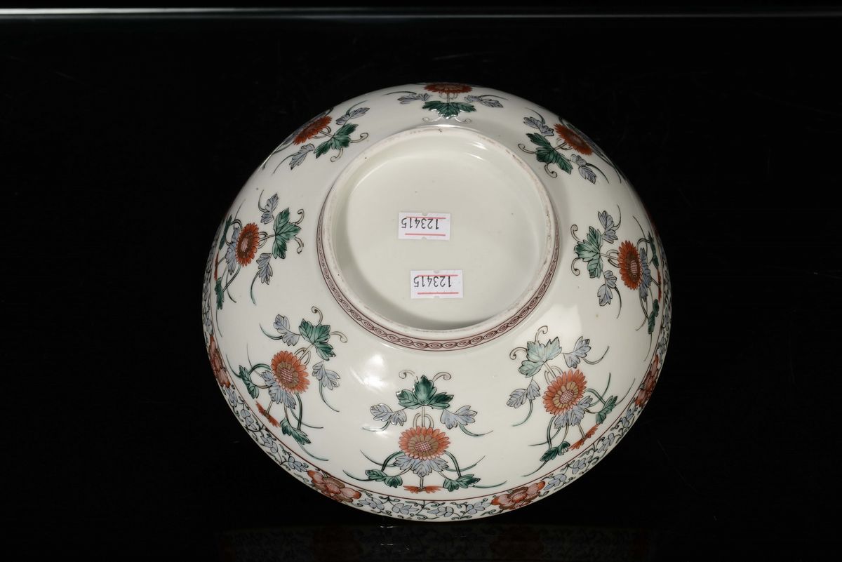 A polychrome kakiemon porcelain bowl with floral decoration, Japan, 19th century