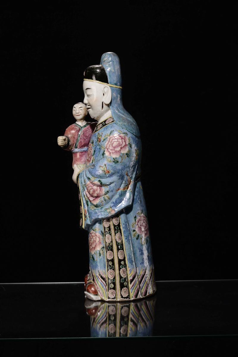 A polychrome porcelain figure, China, Qing Dynasty, late 18th century