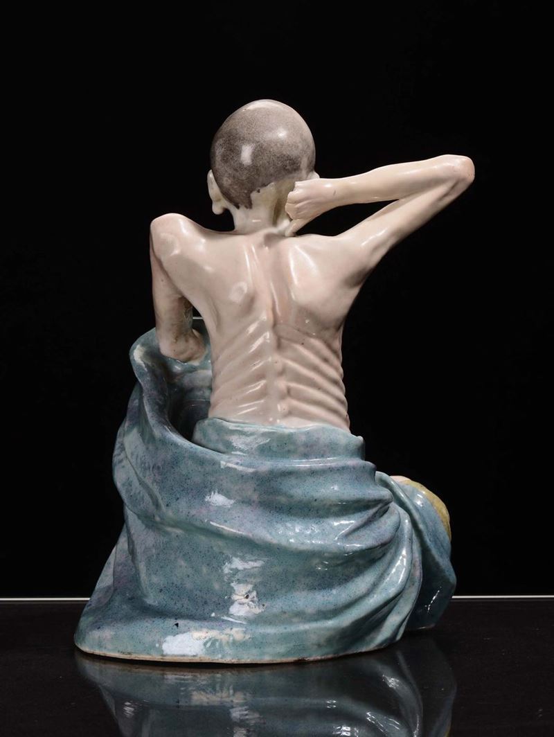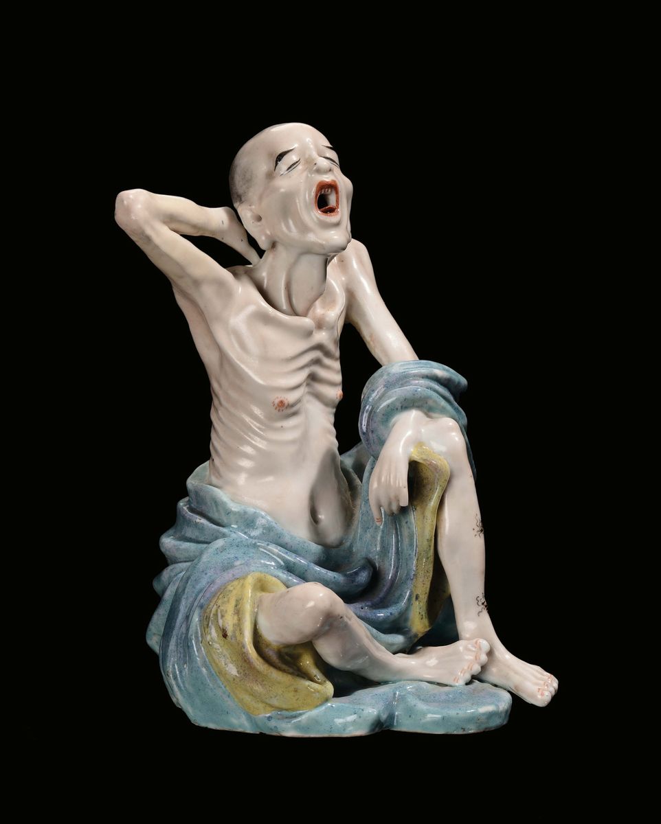 A polychrome porcelain Lohan sculpture, China, Republic, 20th century