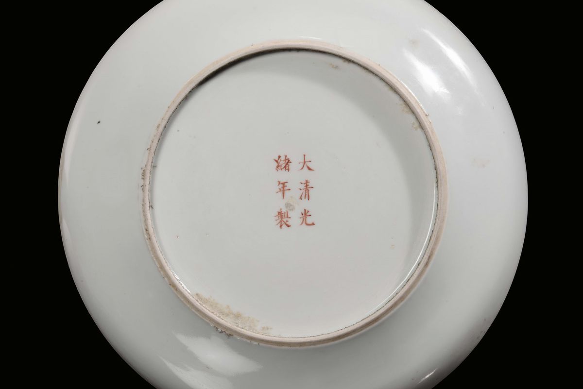 A polychrome procelain dish with landscape, China, Republic, 20th century
