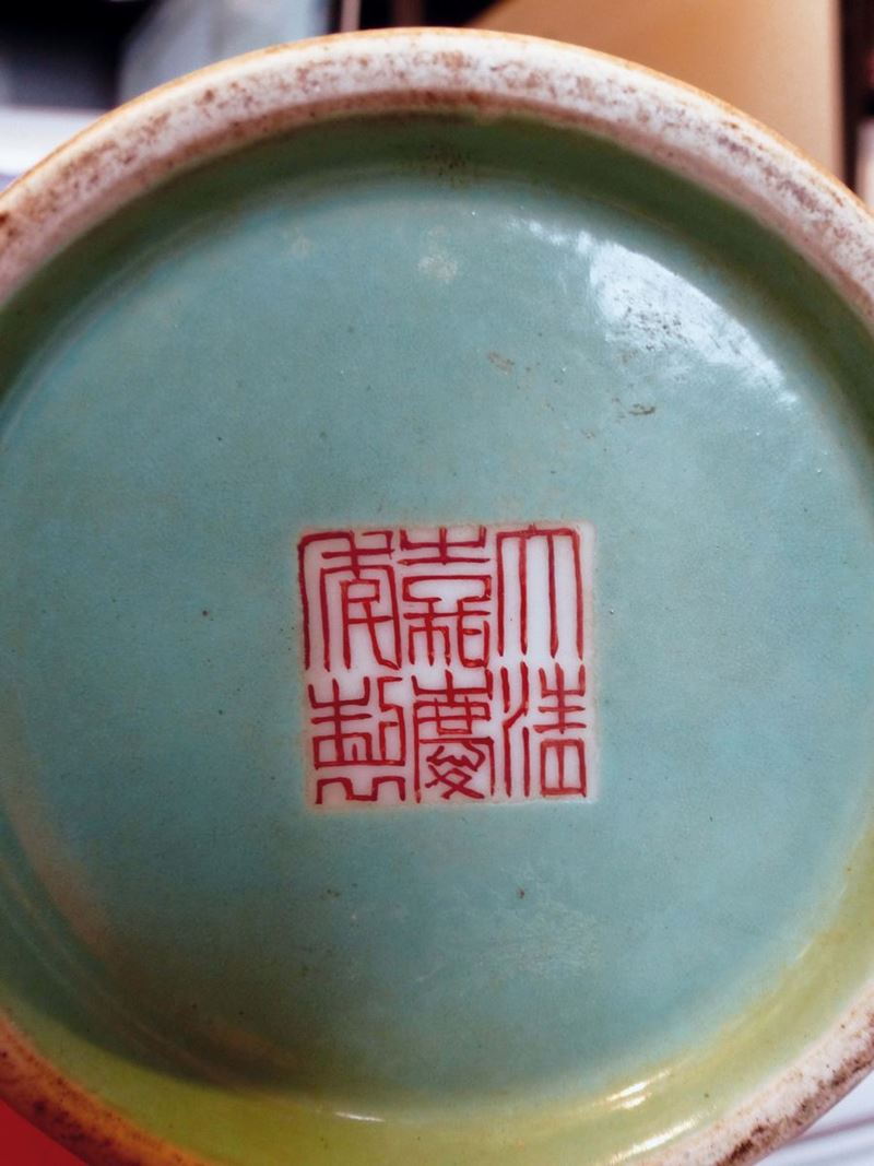 A porcelain long neck vase with relief dragon, China, Repubblica, 20th century