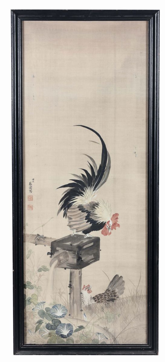 A signed painting on silk with cock, China
