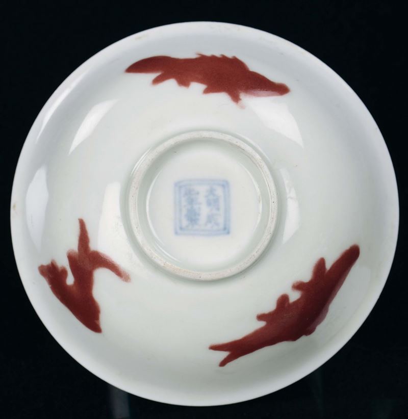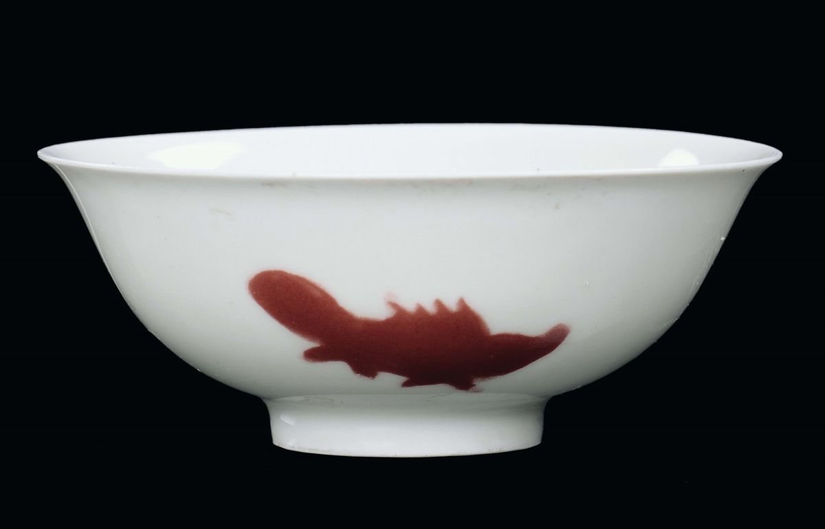 A small porcelain cup with red fish decoration, China, Qing Dynasty, late 19th century