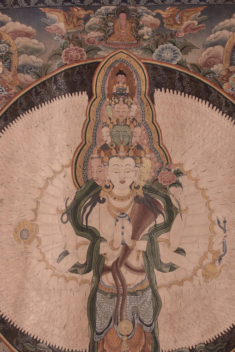 A Thangka decorated with figures of divinities, Tibet, 19th century