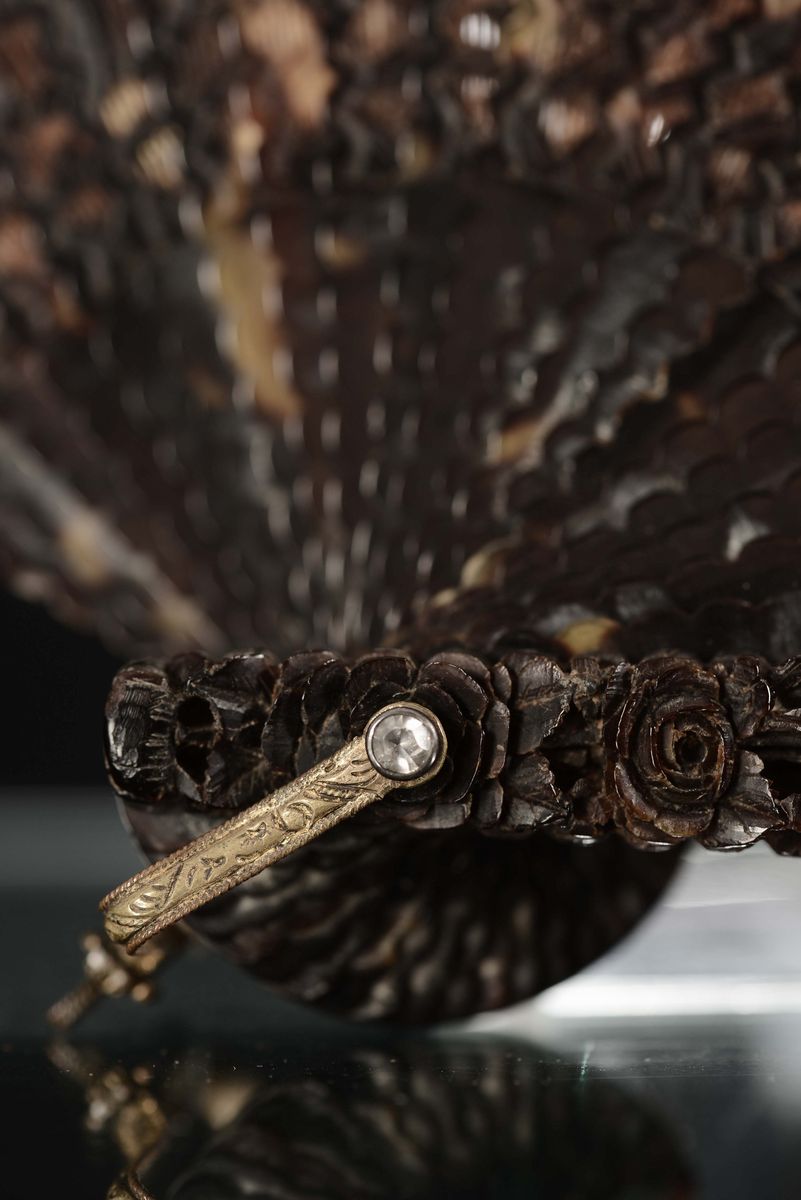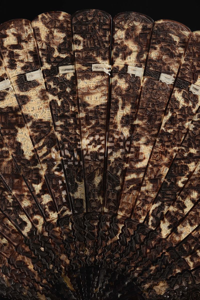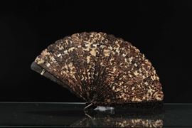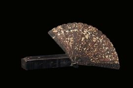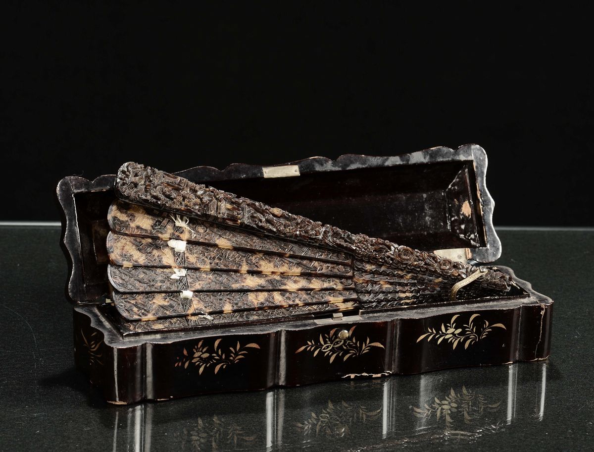 A turtle carved fan with lacquered box, China, Qing Dynasty, 19th century