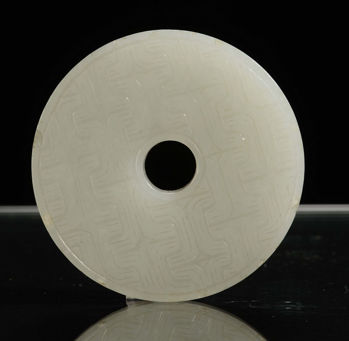 A white jade Pi disk carved with dragon, China, Qing Dynasty, 19th century