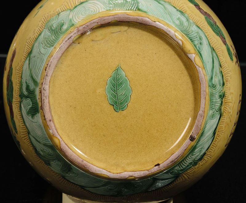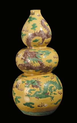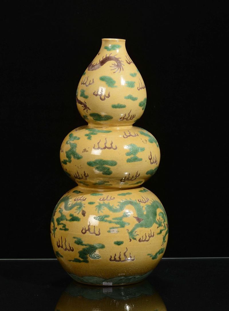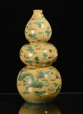 A yellow background porcelain “pumpkin” vase with naturalistic decoration, China, Republic, 20th century