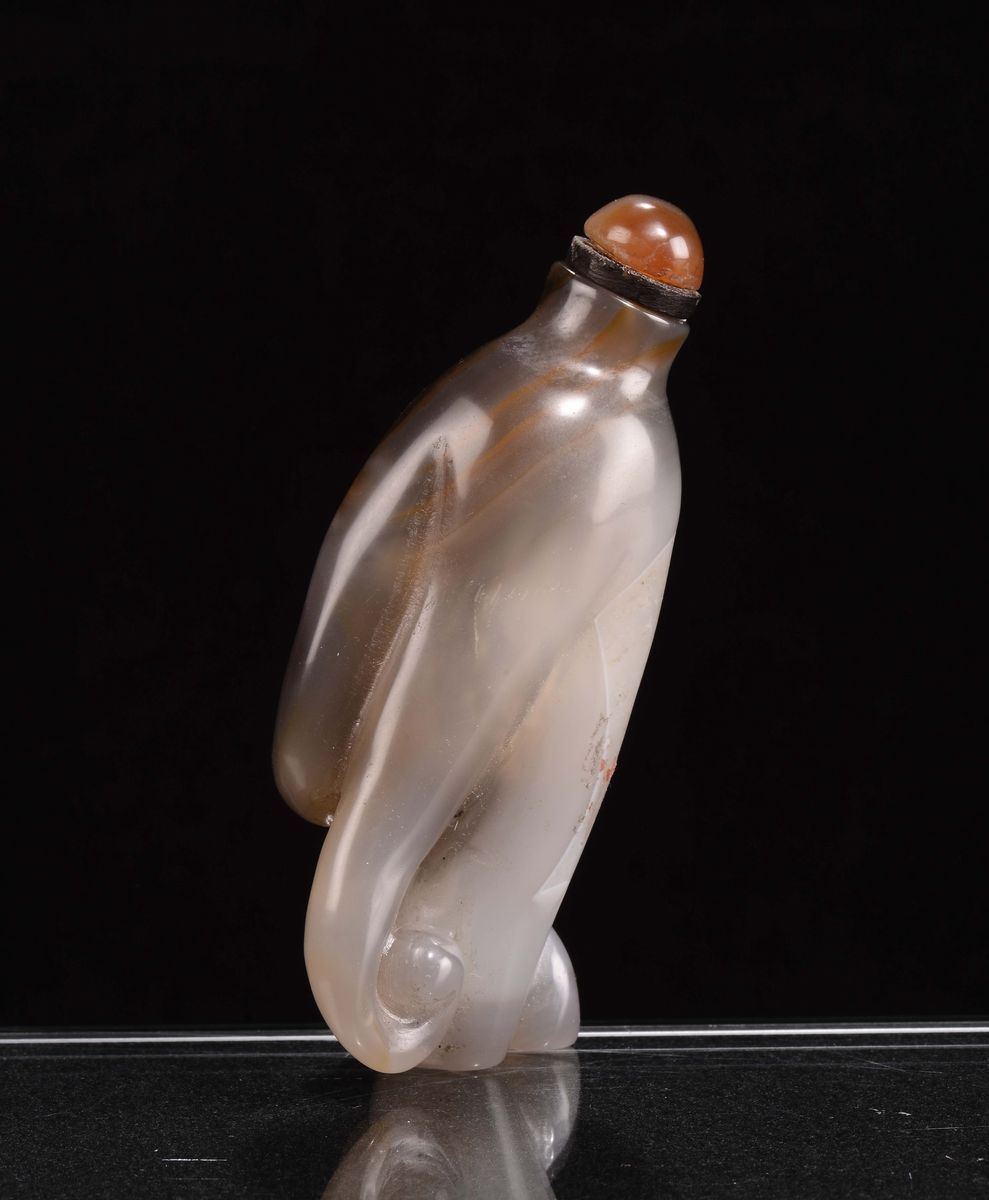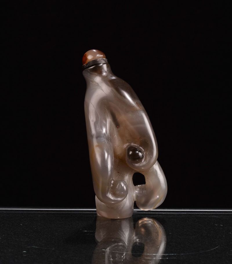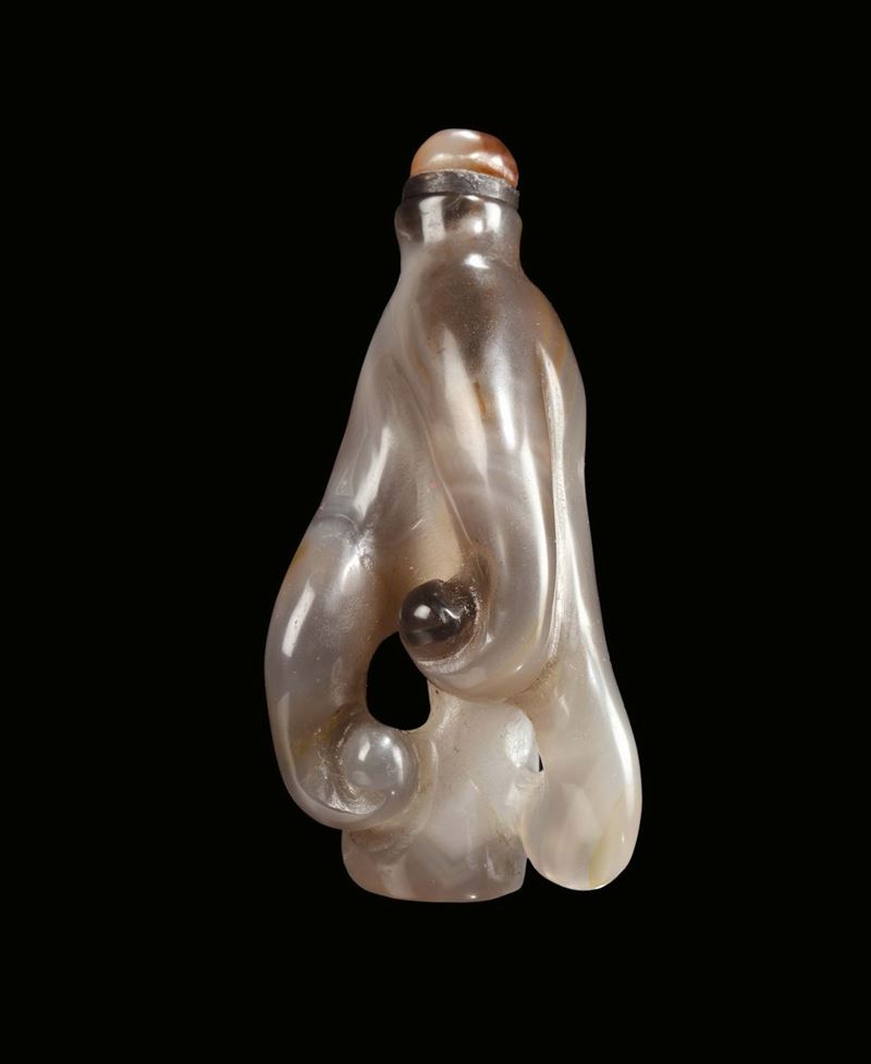 An agate “hand of Buddha” snuff bottle, China, Qing Dynasty, 19th century