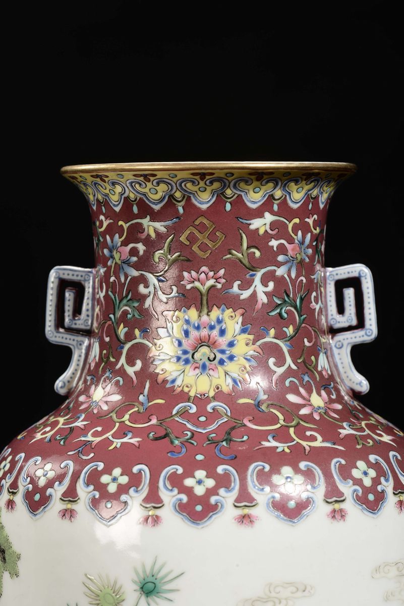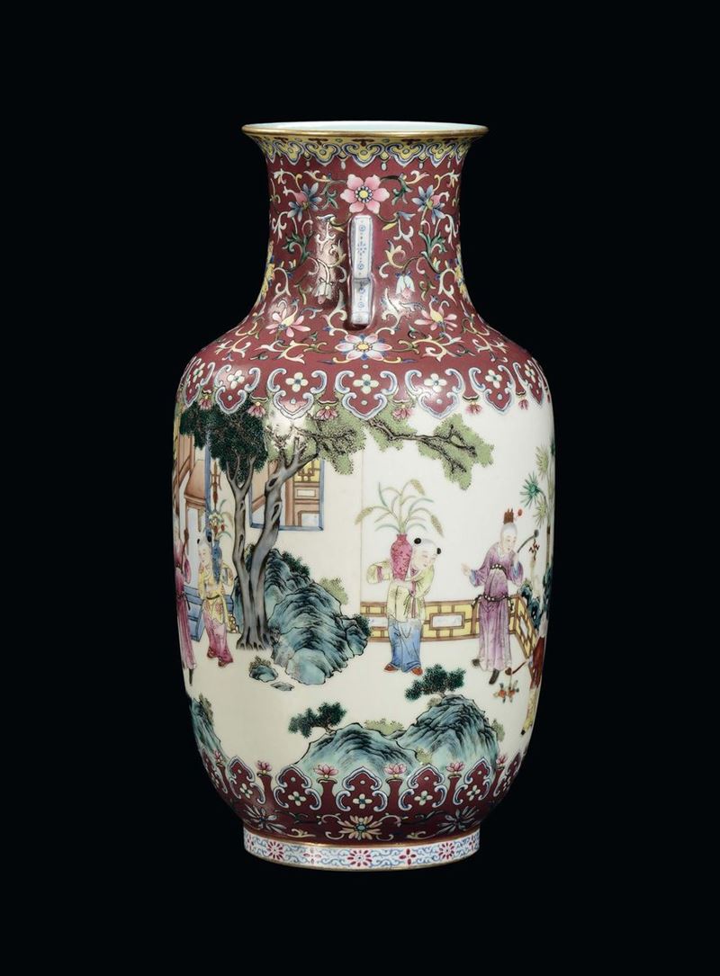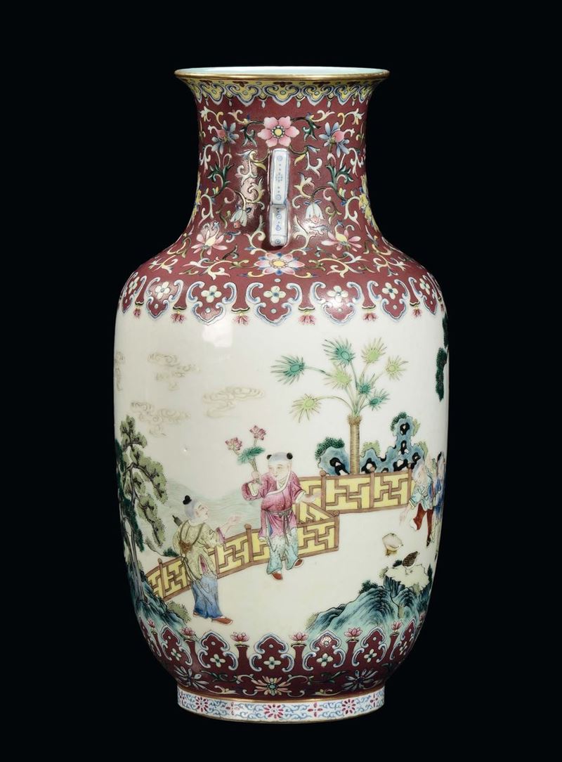 An important polychrome Famille-Rose porcelain vase decorated with oriental life scenes, China, Qing Dynasty, Jiaqing (1796-1820) [..]