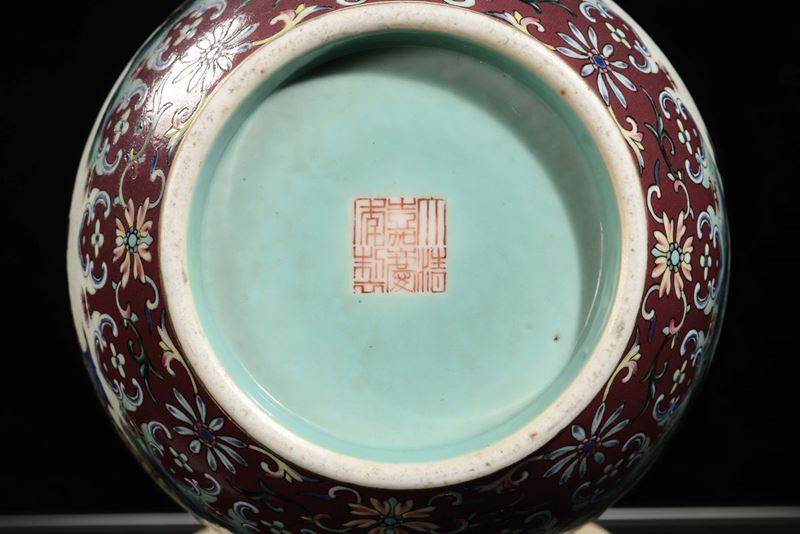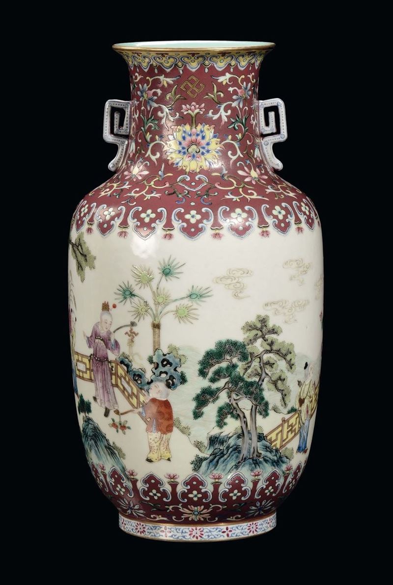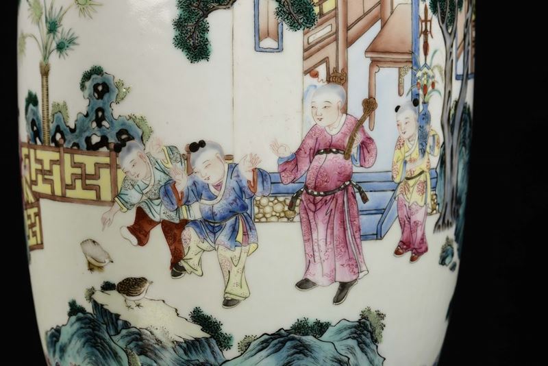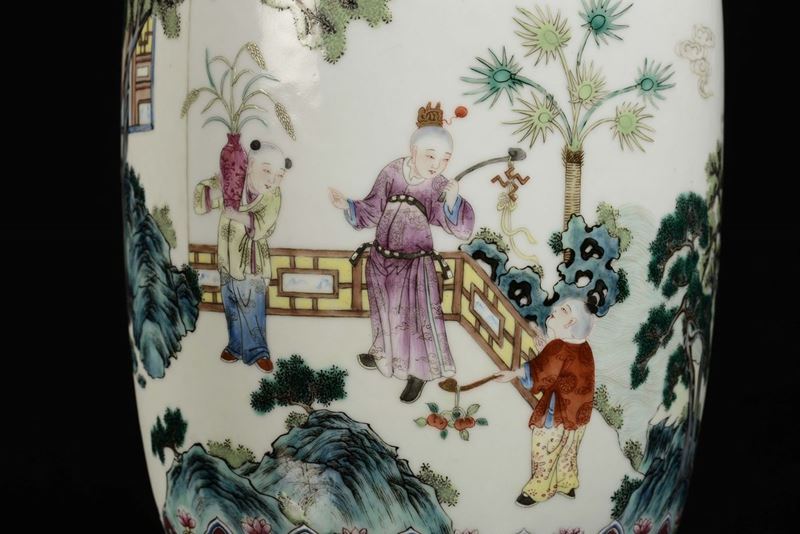 An important polychrome Famille-Rose porcelain vase decorated with oriental life scenes, China, Qing Dynasty, Jiaqing (1796-1820) mark and the period