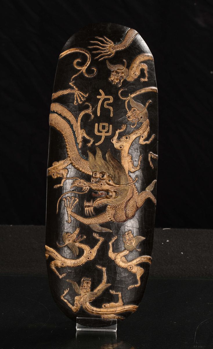 a rilievo draghi e iscrizioni, cm 38x13,5x5,5