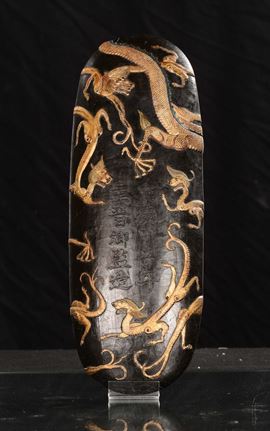 An ink stone sculpture, China, Qing Dynasty, Jiaqing Period (1796-1820), dated 1804