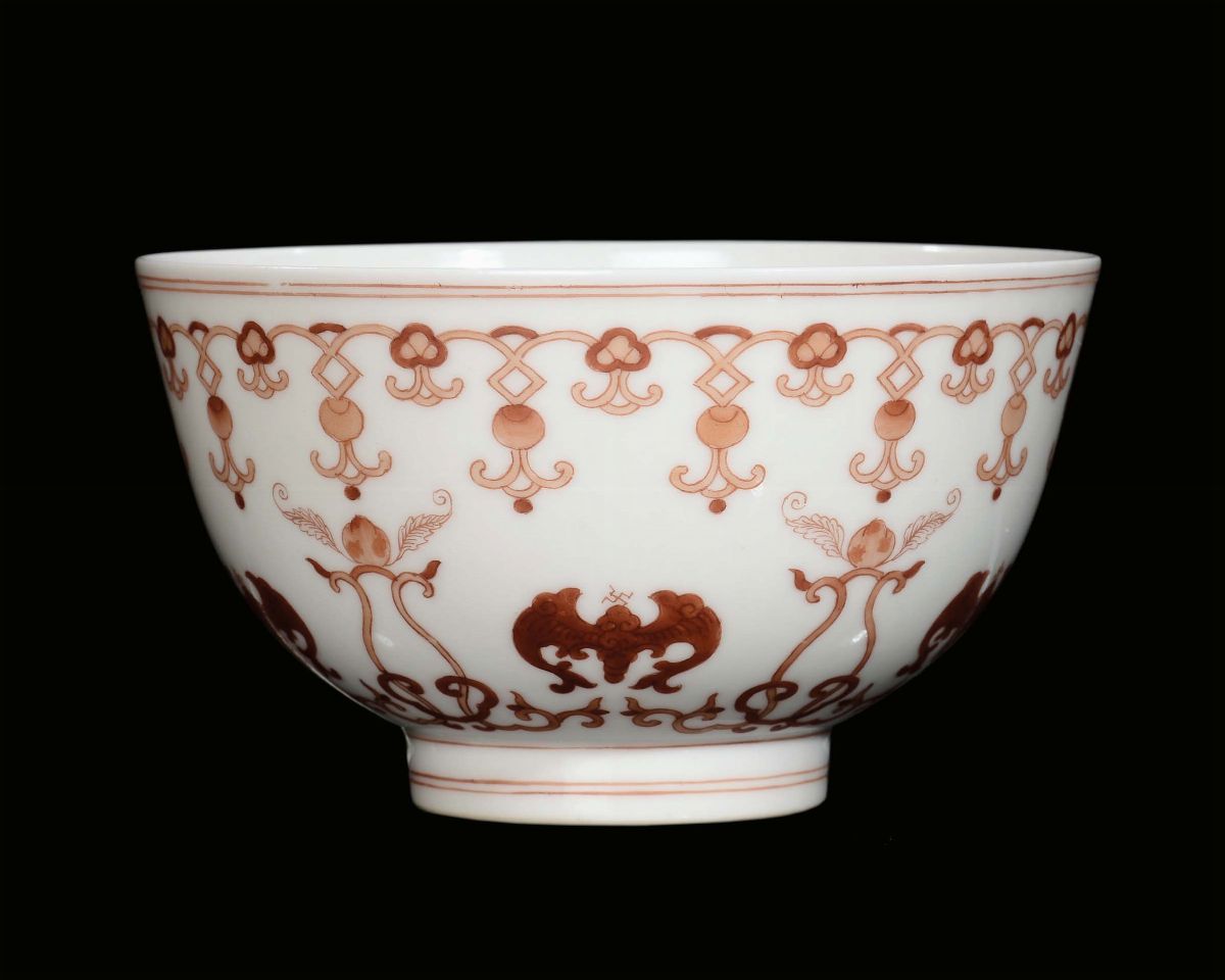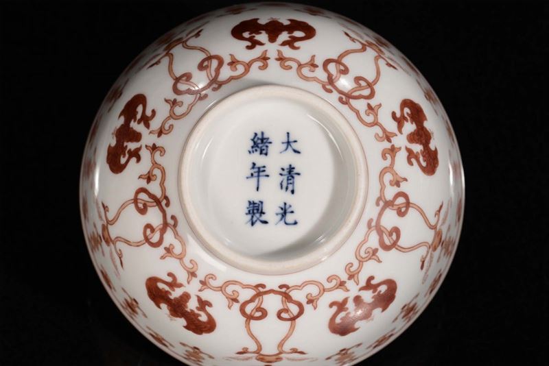 Ciotola in porcellana policroma con decoro in rosso, Cina, Dinastia Qing, XIX secolo