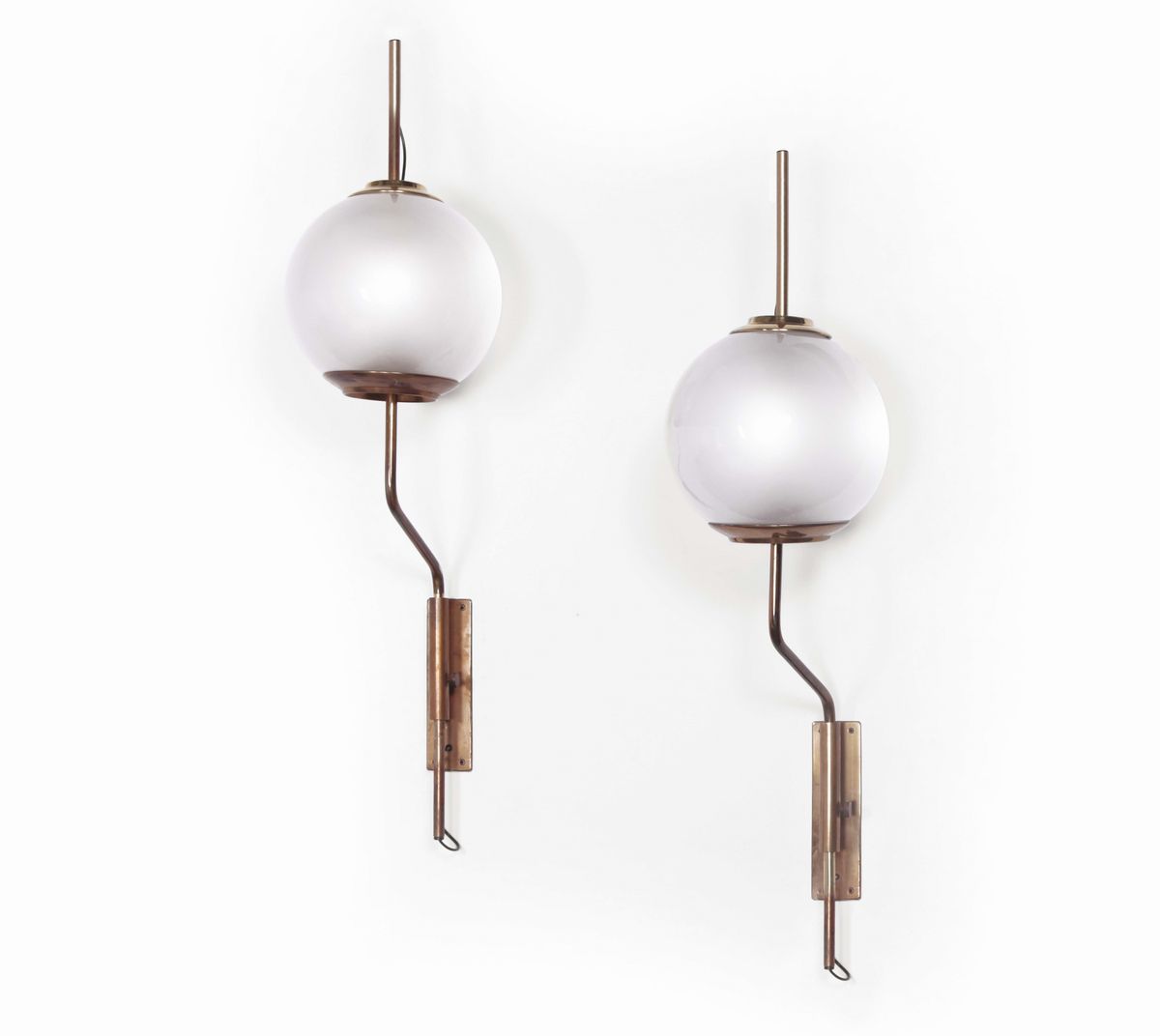 Luigi Caccia Dominioni. Coppia di lampade da muro LP11 in ottone e vetro satinato. Prod. Azucena, Italia, 1958