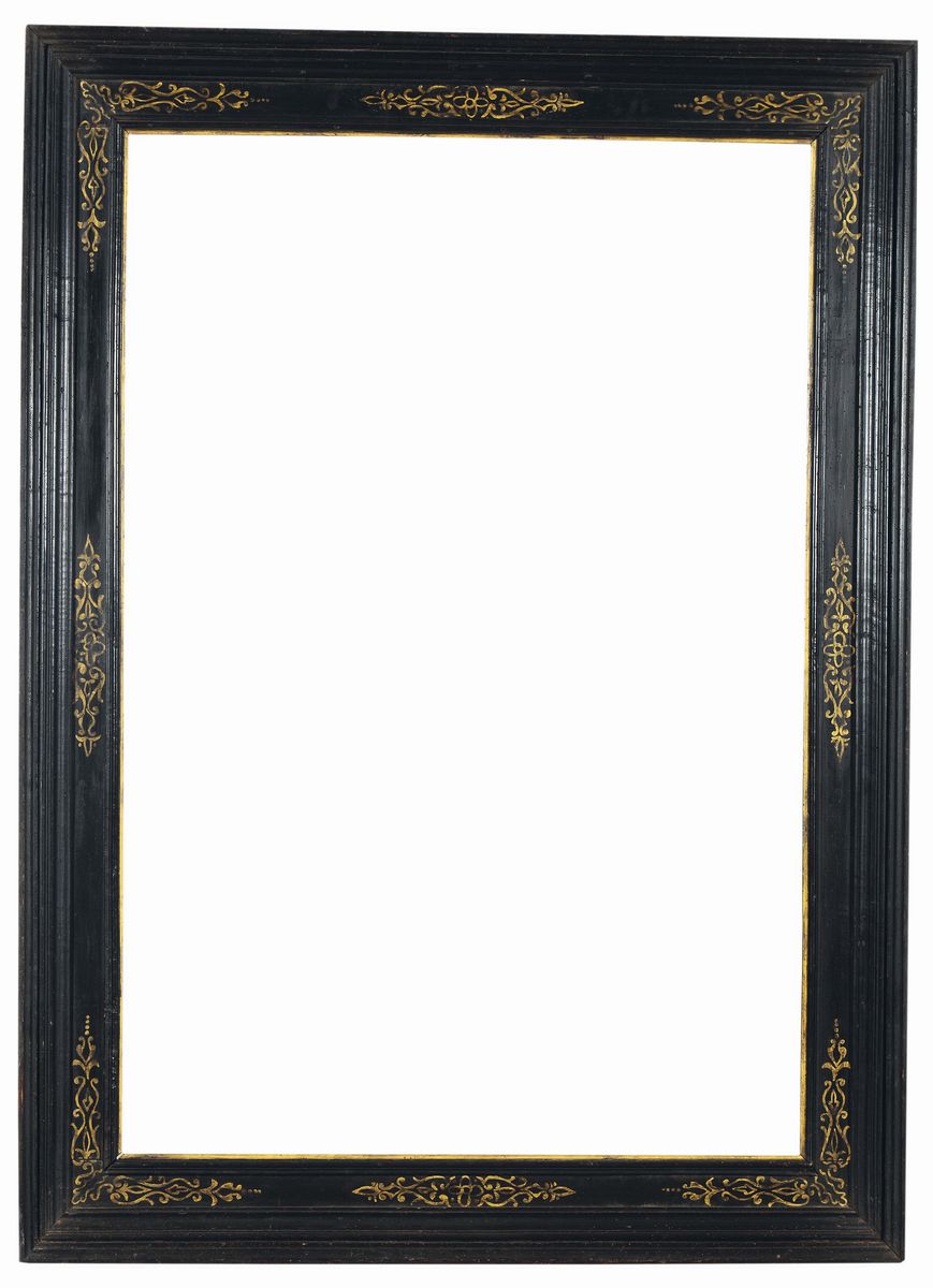 Cornice a cassetta in legno ebanizzato e decorazioni dorate, Siena XVI secolo