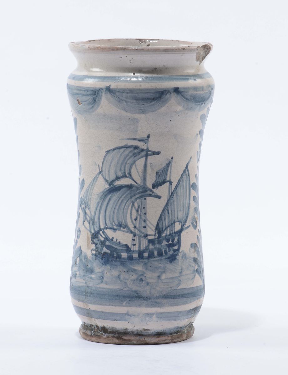 Albarello in maiolica bianca e blu, Sicilia o Napoli XVIII secolo