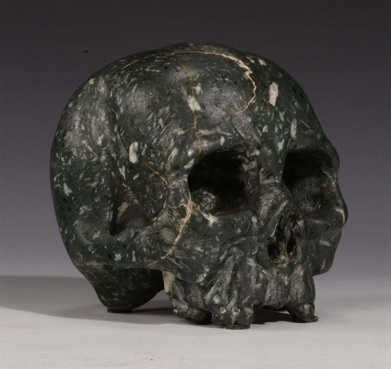 Antico memento mori in serpentino verde