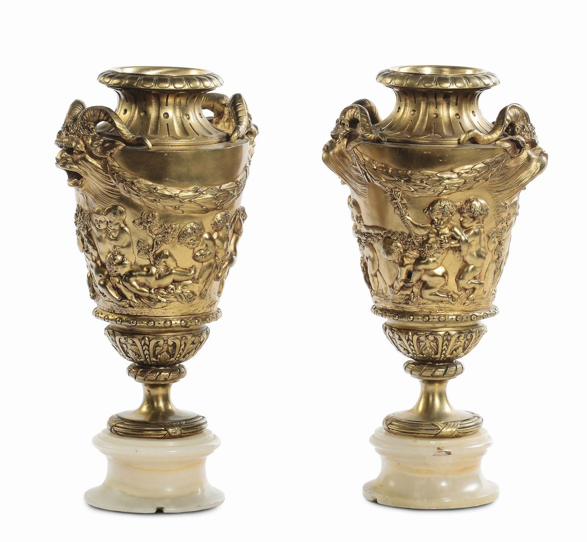 Coppia di vasetti in bronzo dorato, XIX secolo
