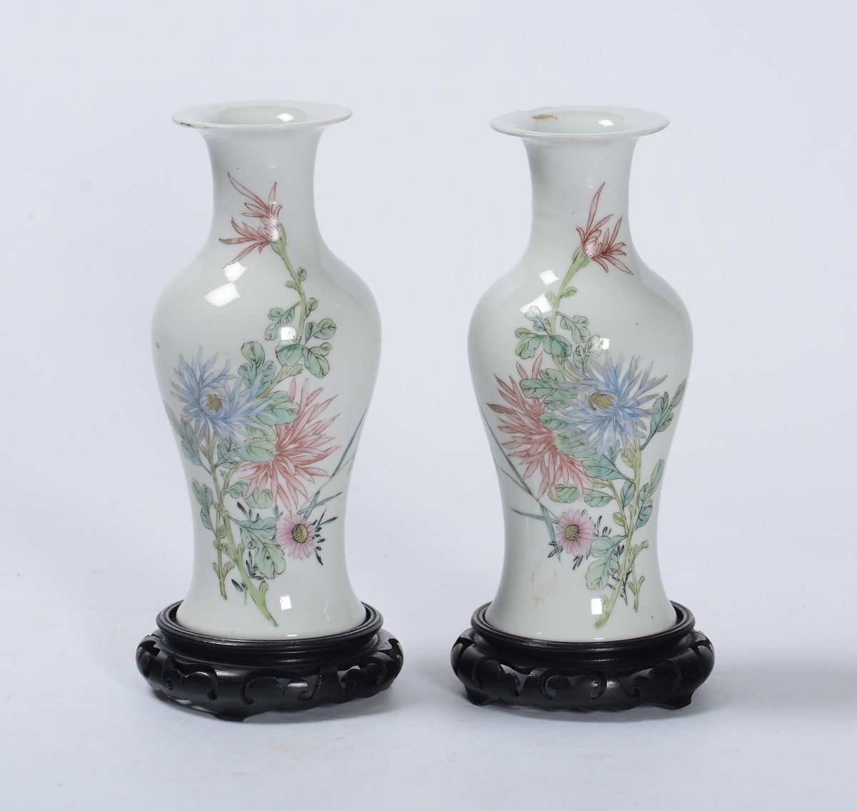 Coppia di vasi in porcellana policroma, Cina XX secolo