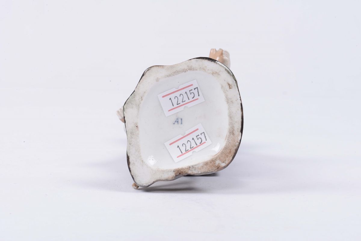 Figura in porcellana policroma di giovane nobile con bastone e giubbetto rosso. Russia 1840/50, manifattura Popov