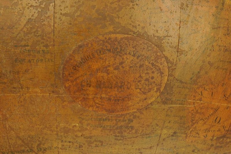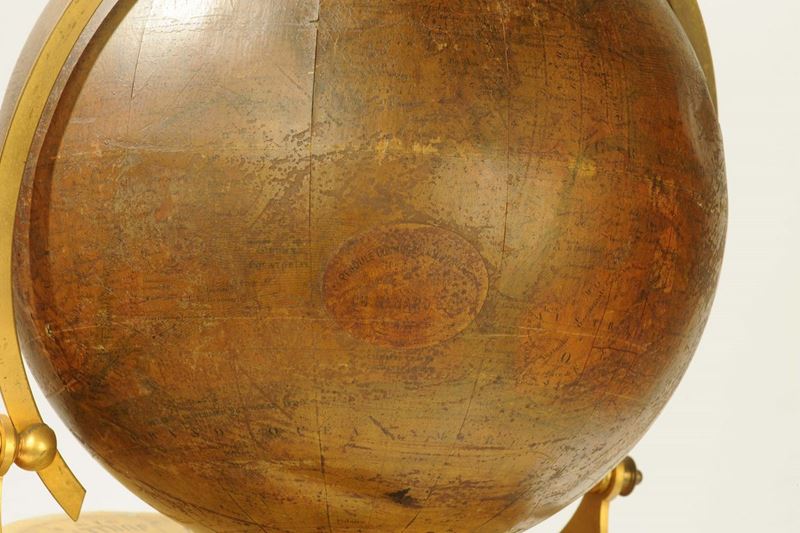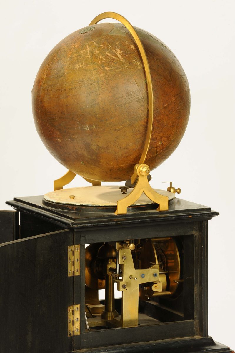 mappamondo girevole, meccanica con scappamento a Brocò, carica a otto giorni,cm 28x28x52