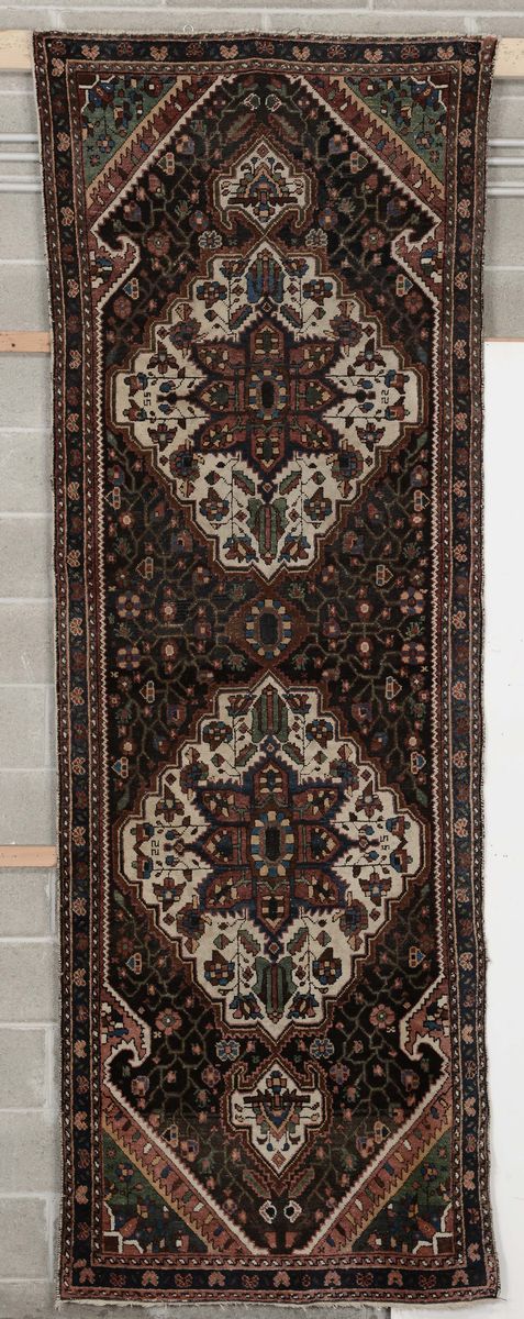 fondo marrone con due medaglioni floreali bianchi cm 309x104