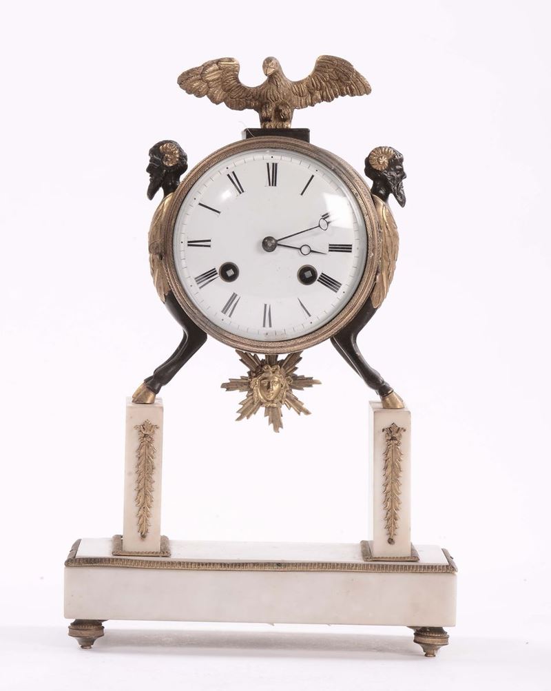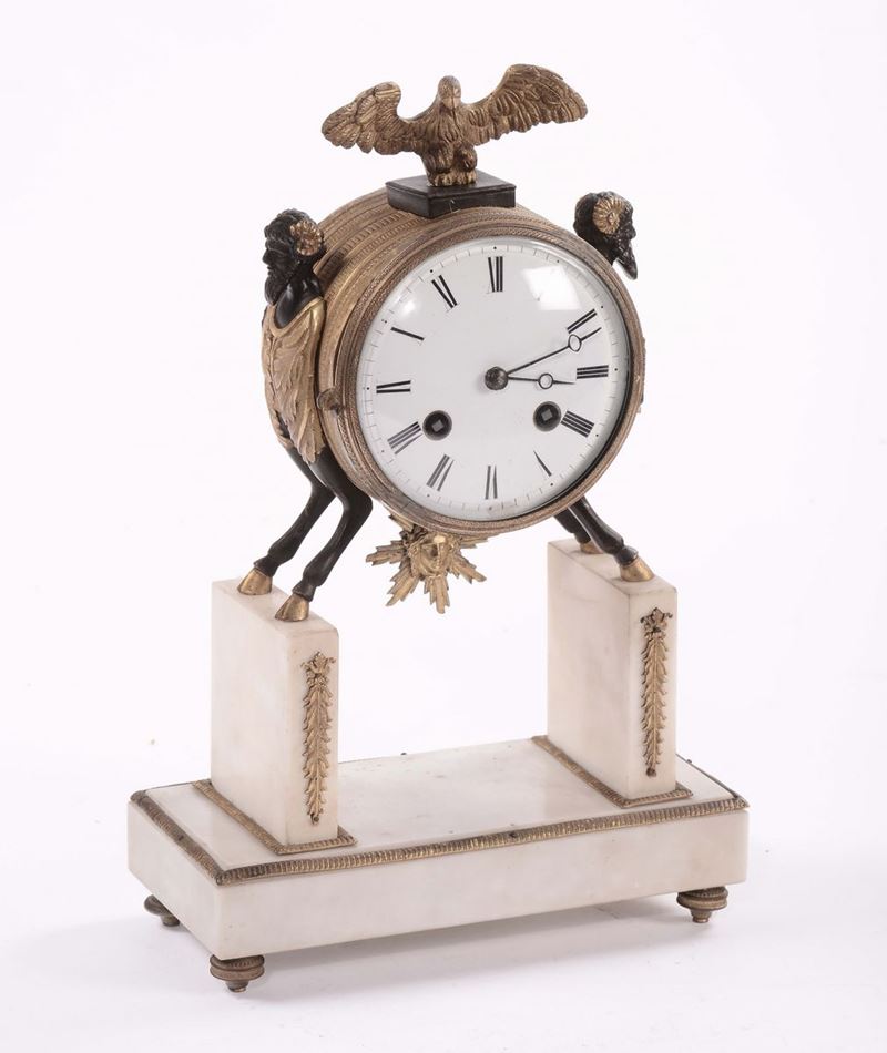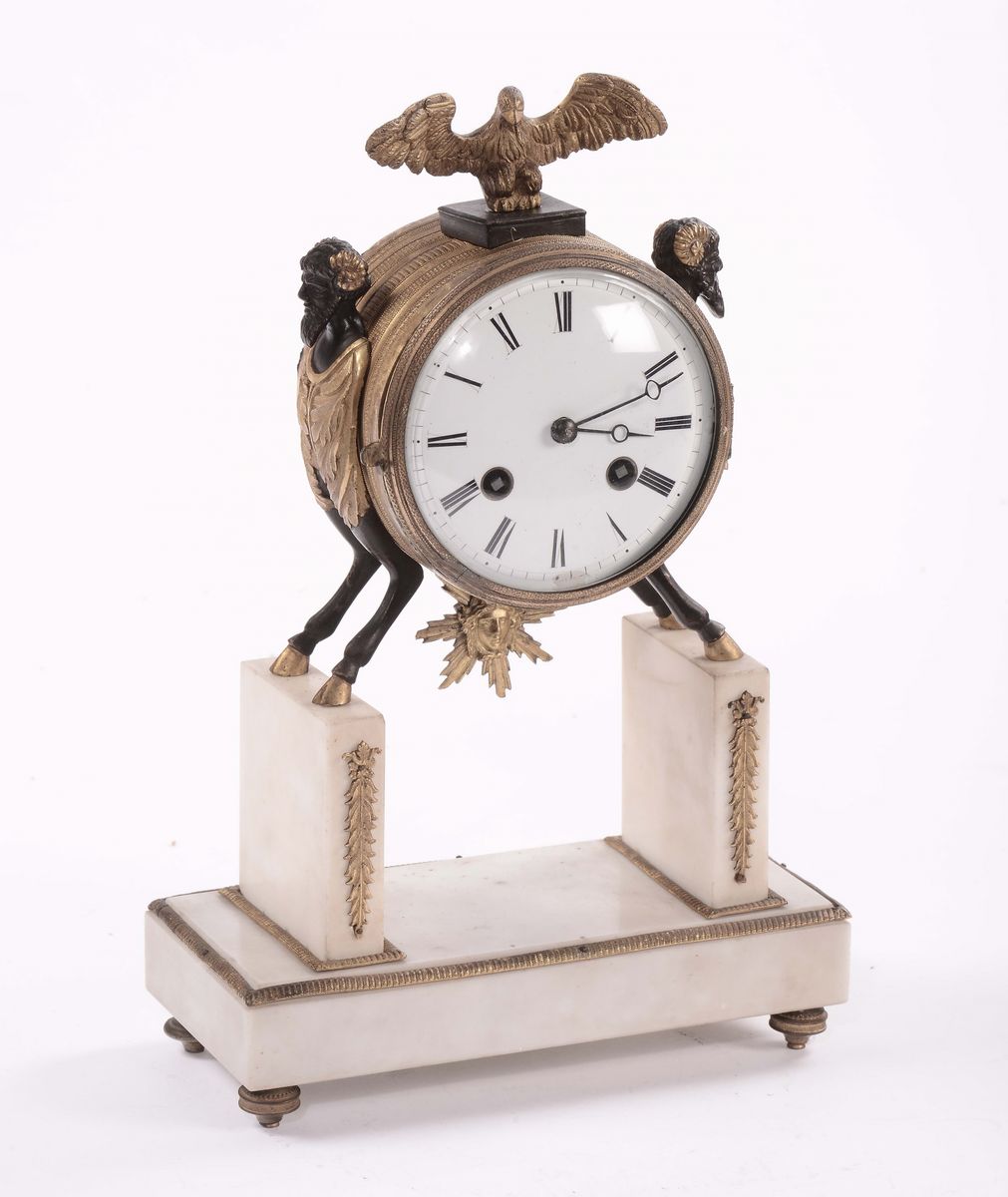 Pendola da tavolo in bronzo e marmo bianco, XIX secolo