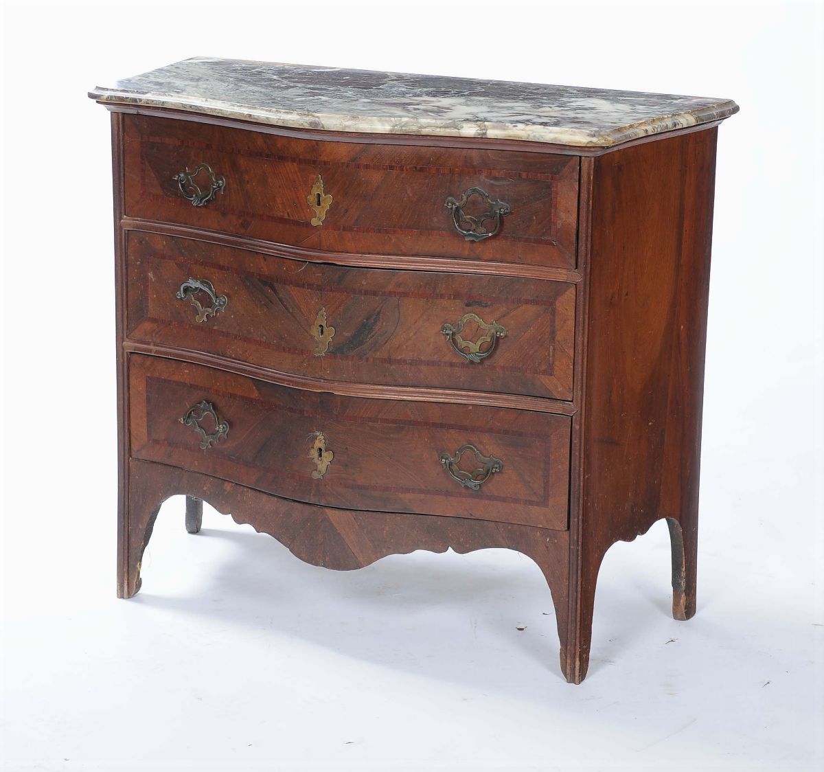 Piccolo comò Luigi XVI con piano in marmo, fine XVIII secolo