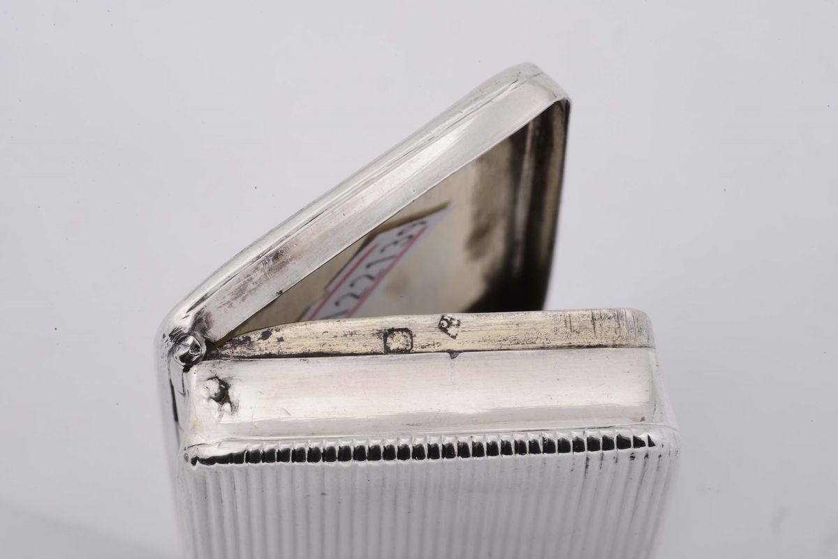 Scatoletta in argento a costolette incisa con monogramma, Francia 1830/40