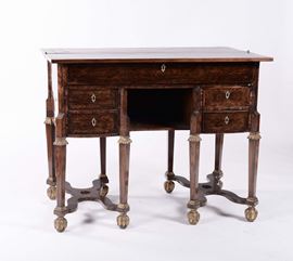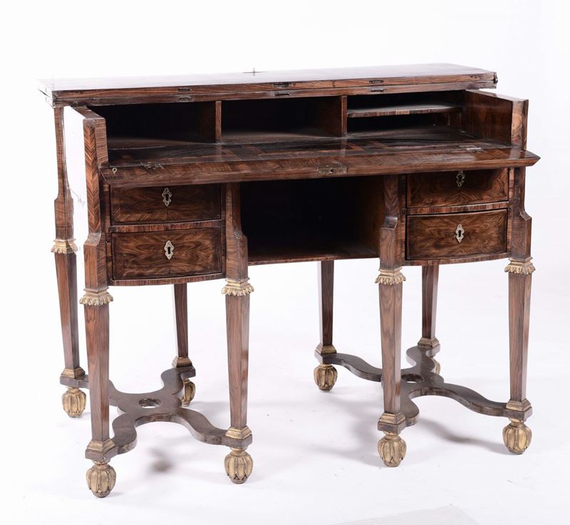Scrivania mazzarino lastronata in bois de violette e palissandro, Genova XVII secolo