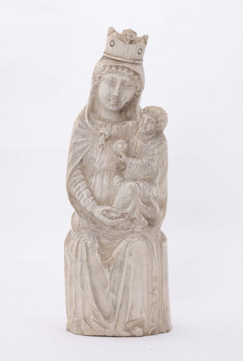 Scultura in avorio raffigurante Madonna con Bambino, nei modi dell’arte gotica
