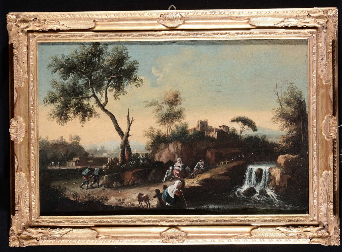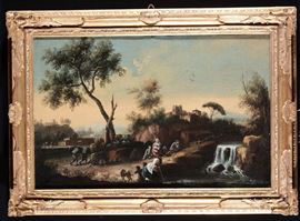 Scuola del XVIII secolo Paesaggi con figure e animali