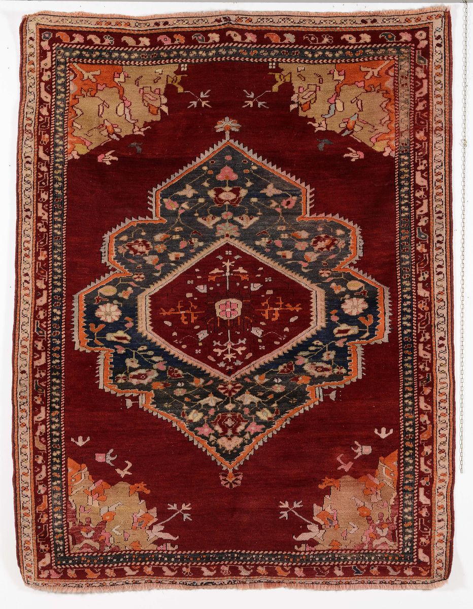 fondo rosso con medaglione centrale verde ed angolari gialli/arancio cm 180x135