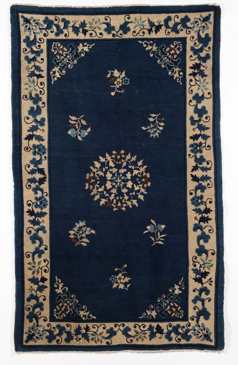 fondo blu con medaglione centrale floreale, bordura bianca cm 205x125