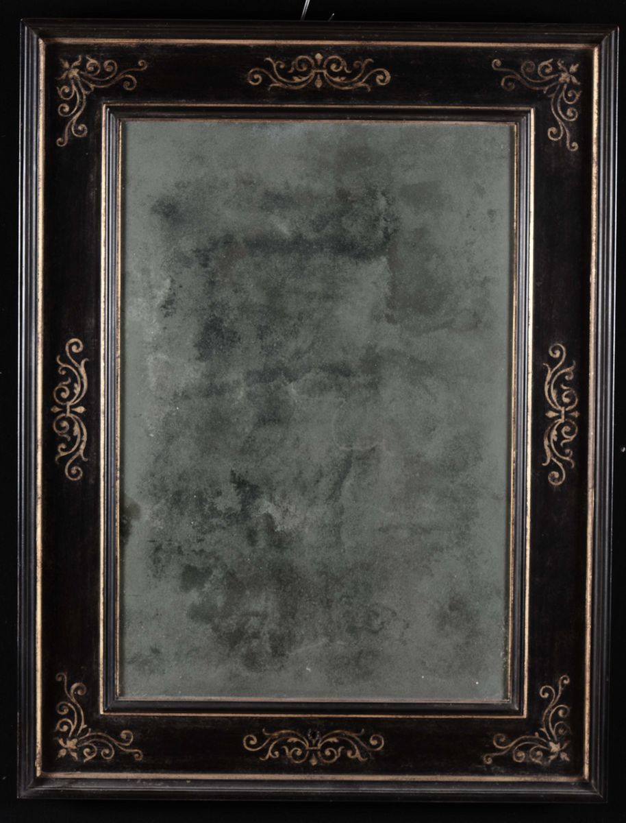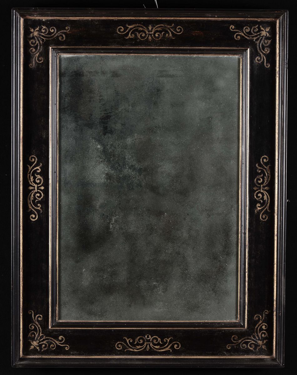 Tre specchiere con cornici a cassetta in legno ebanizzato con racemi dorati, fine XIX secolo