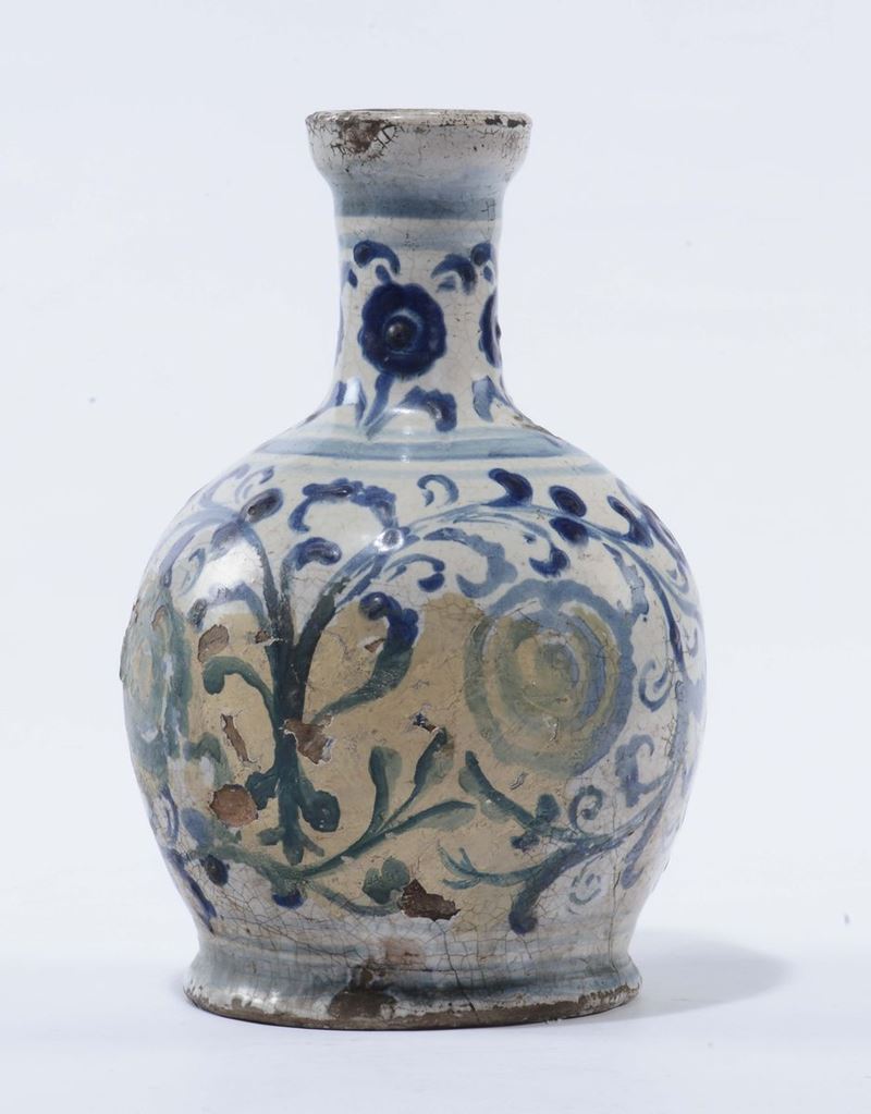 Vaso da farmacia in maiolica bianca e blu, Caltagirone XVII secolo