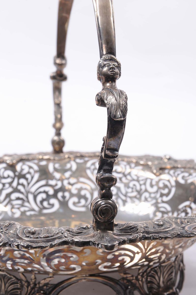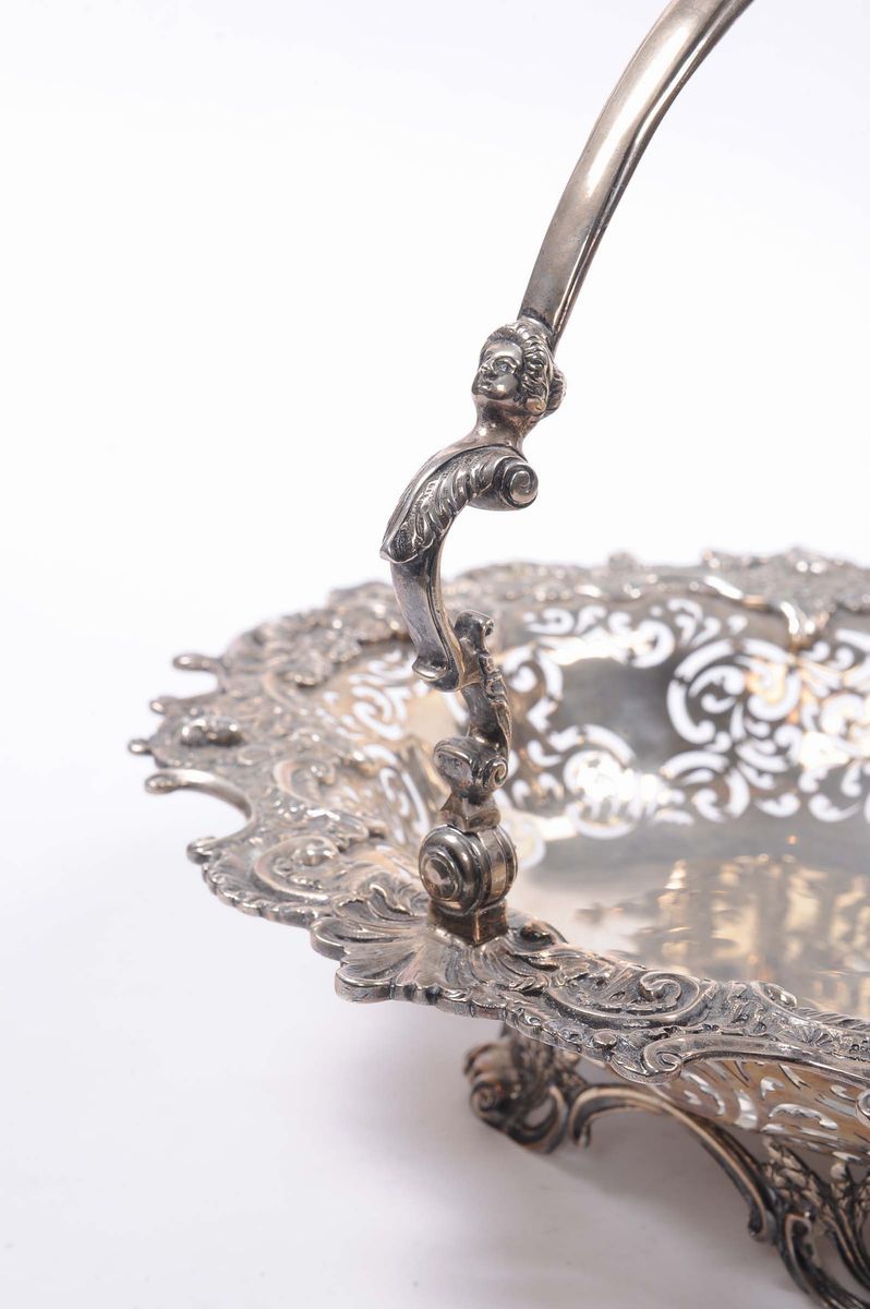 Cestino portadolci in argento traforato, Inghilterra XIX secolo