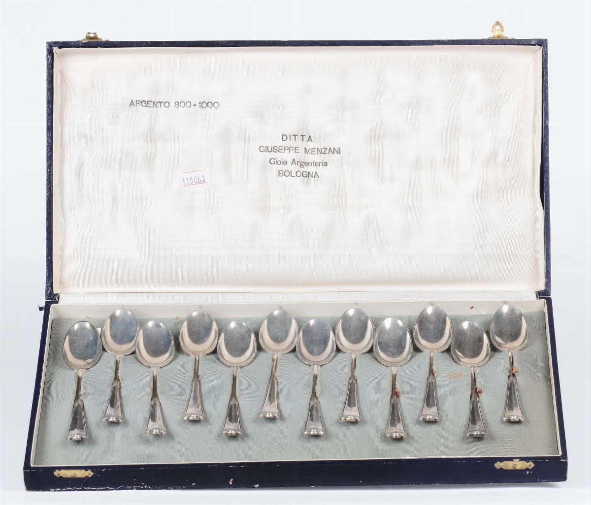 nel lotto anche scatola contenente 12 cucchiaini in argento, 2600 gr.