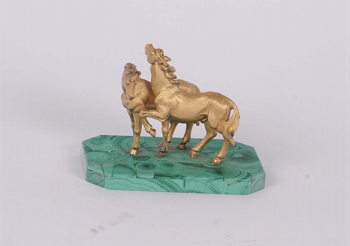 Statuina raffigurante cavalli con base in malachite