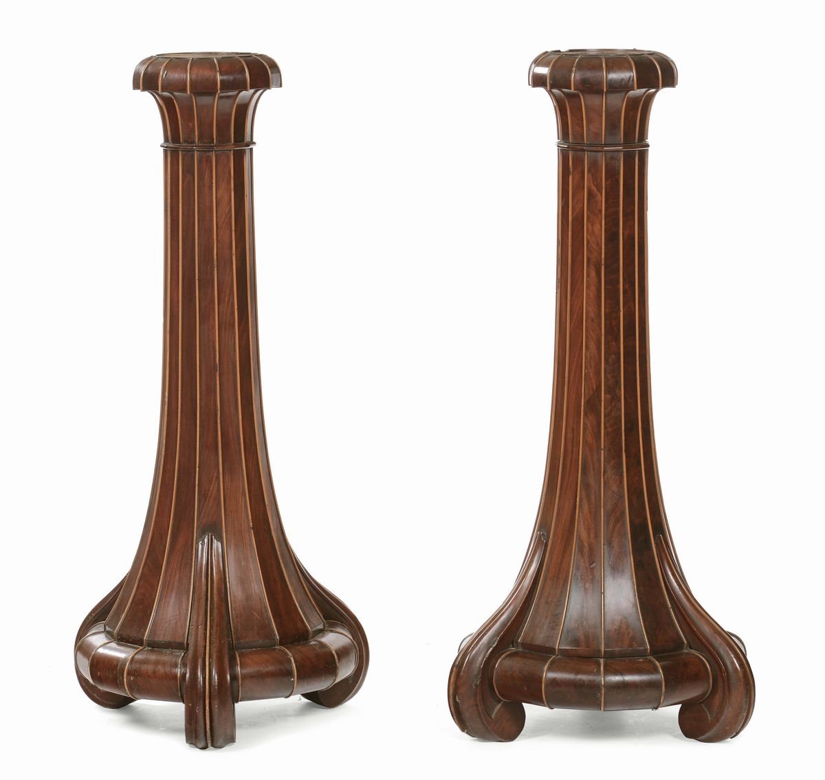 Coppia di colonne in noce con filettature in acero, Sicilia prima metà XIX secolo