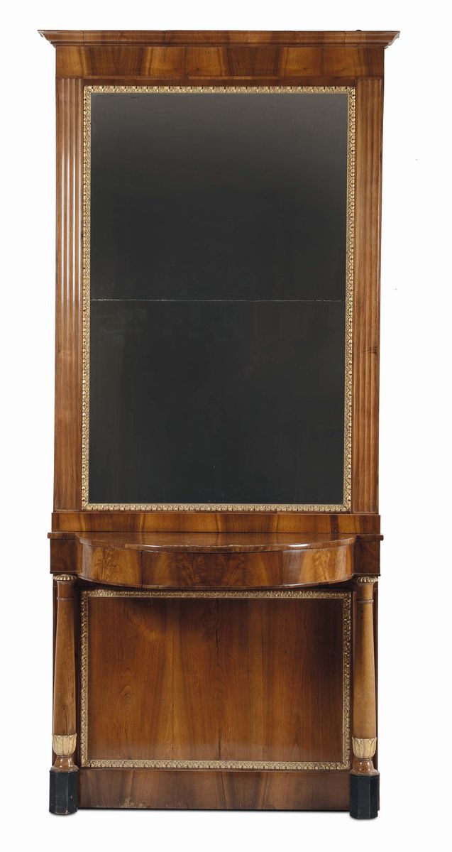 Coppia di consolles con specchiere in radica di noce, Emilia periodo Impero