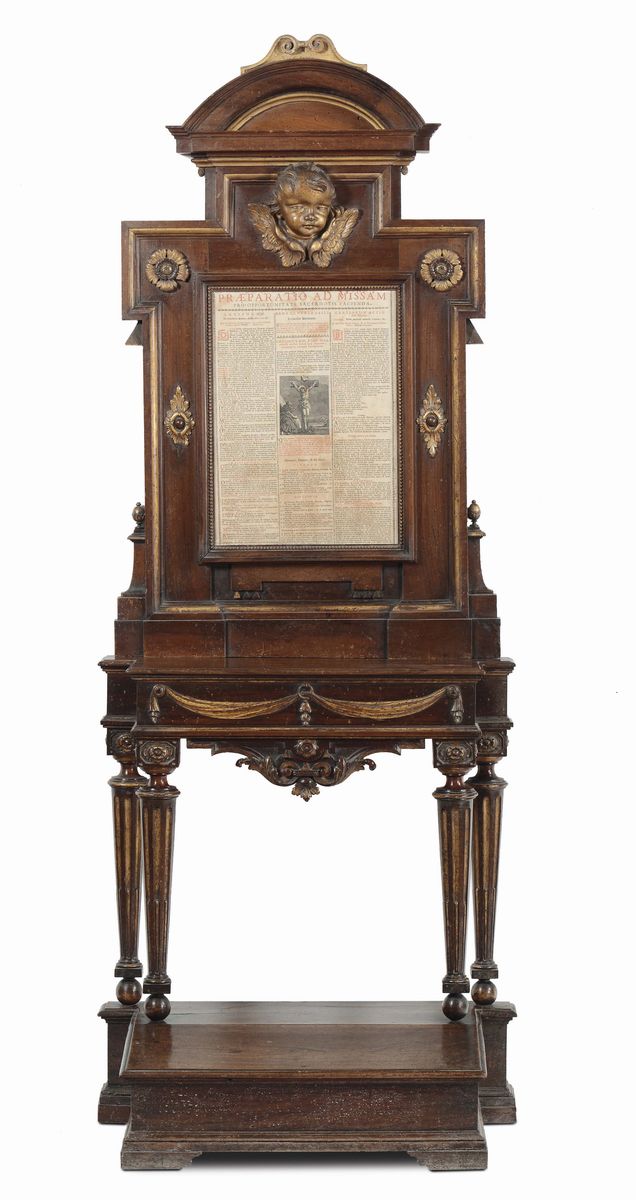 Coppia di inginocchiatoi con alzata in noce, Italia centrale seconda metà XVIII secolo