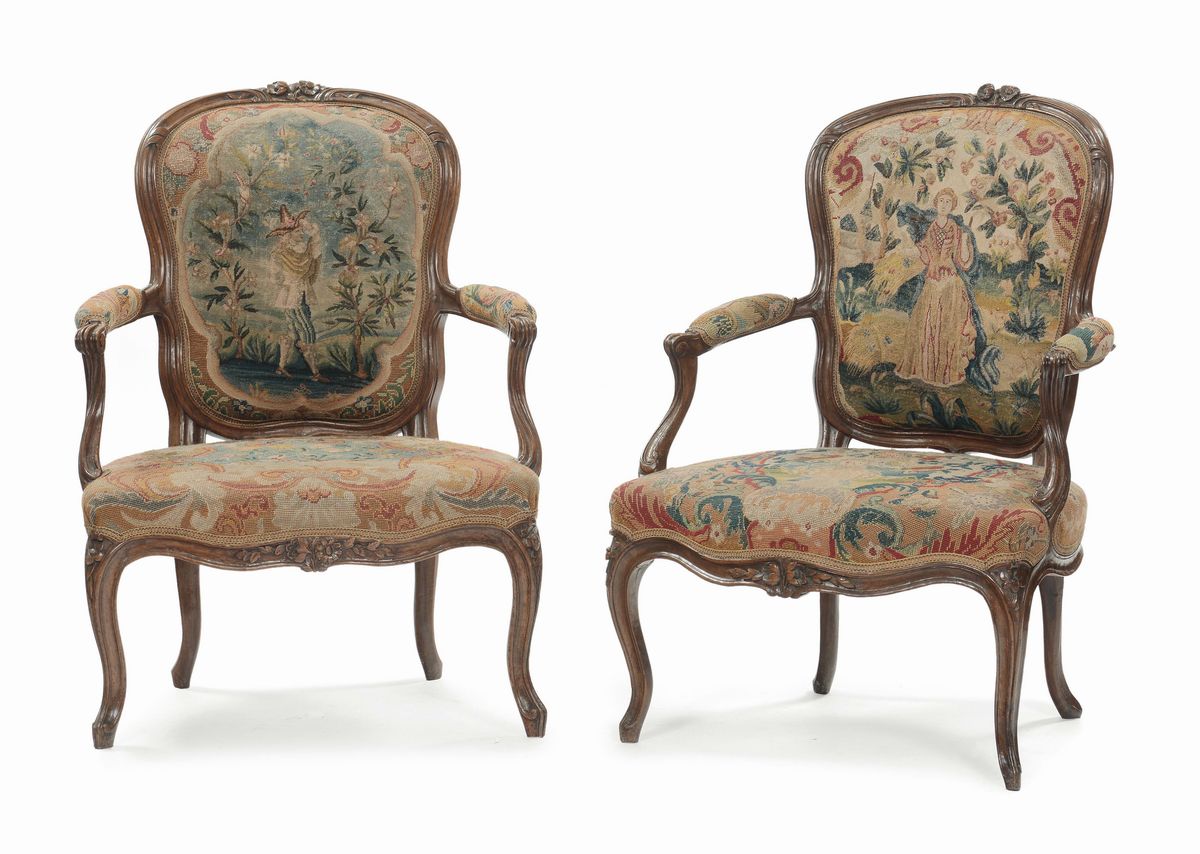 Coppia di poltrone in noce finemente intagliate, Pier Remy, Francia seconda metà XVIII secolo