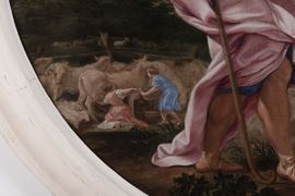 coppia di dipinti ad olio su tela circolare, diametro cm 124