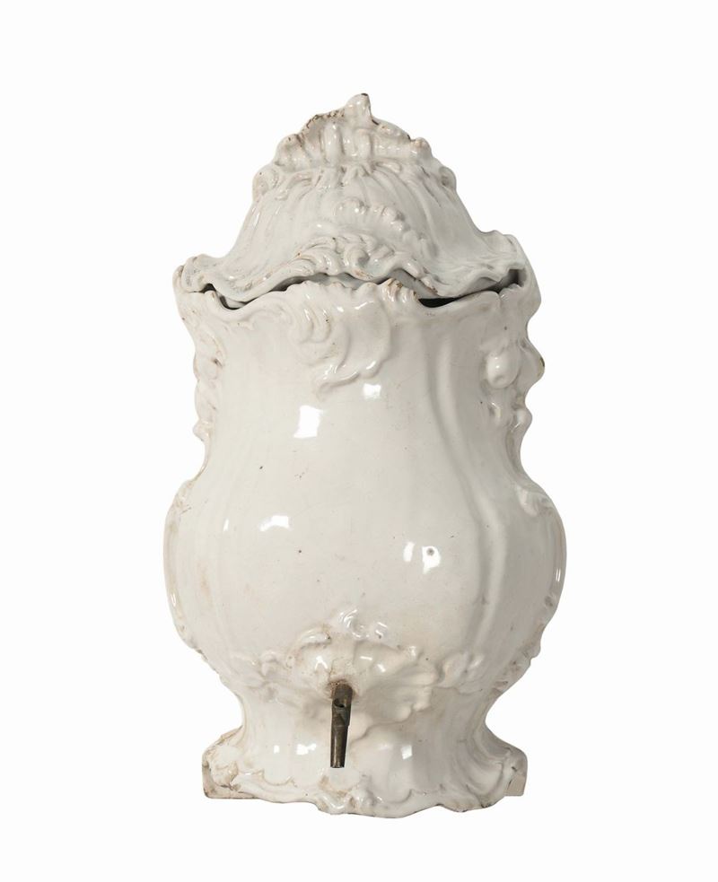 Versatoio in maiolica bianca e piatto simile, XVIII secolo