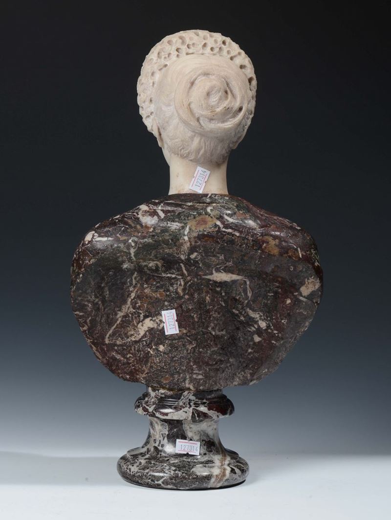 A female bust with white marble head and coloured marble dresses, Neoclassical sculptor,