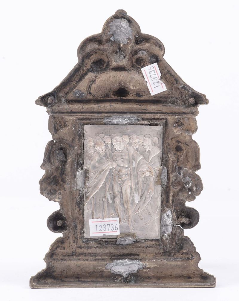A gilt bronze and embossed and chiselled silver pax, Italy P17th -19th century